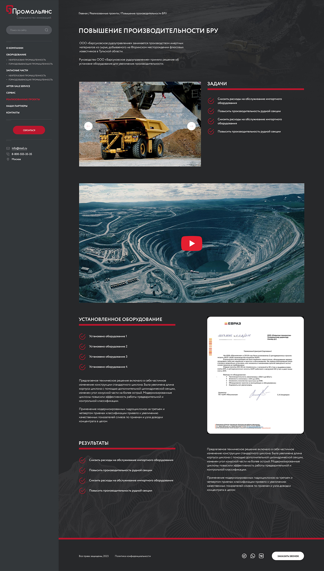 Кроме того на сайте размещен каталог оборудования, в котором можно в удобном формате найти необходимое оборудование, имеющееся у бизнеса и оставить заявку для начала сотрудничества