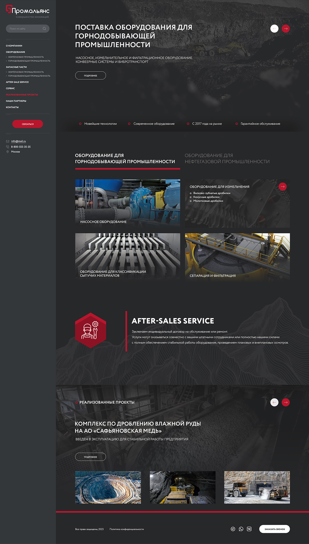 Также имеется описание услуг, таких как "Аутсорсинг закупок" и "Инженерное сопровождение заканчивания скважин с предоставлением оборудования" где в понятном стиле размещены уникальные преимущества работы с бизнесом.